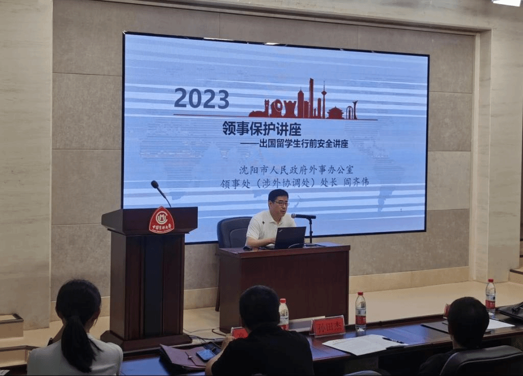 培训会上,沈阳市人民政府外事办公室领事处(涉外协调处)处长阎齐伟结合我驻外使领馆最新通报与提示,强调了留学人员在留学期间应在电信诈骗、自然灾害、社会治安等方面关注自身境外安全,围绕领事保护与协助、国外人身、财产安全注意事项进行了详细、生动的讲解。