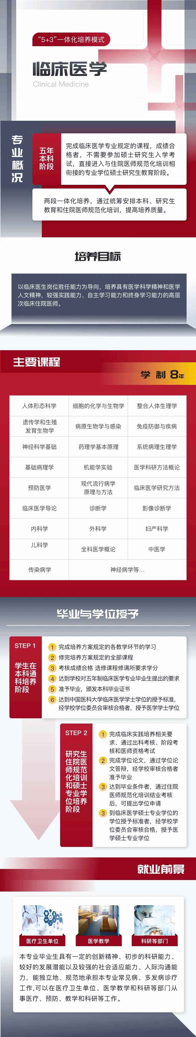 中国医大招生就业将陆续为大家介绍本校各专业,今天介绍的是——临床医学(“5+3”一体化)。