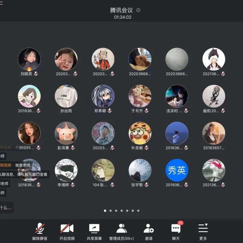 两位主讲人与同学们循循渐进地交流与互动,是从“浅层互动”到“心灵交流”的进阶。会议期间,面对主讲人提出的问题,同学们认真地思考,积极踊跃地发言,使线上小课堂变得热闹起来。