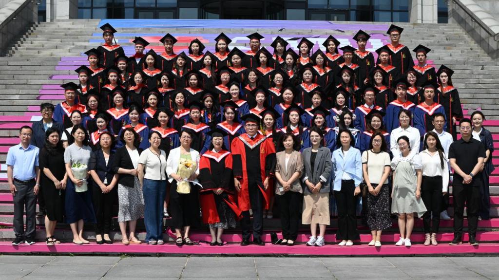 随着毕业典礼与学位授予仪式的圆满结束,全体师生移步至图书馆外台阶处,留下了一张张笑脸灿烂的合影,定格了这一刻的美好记忆。