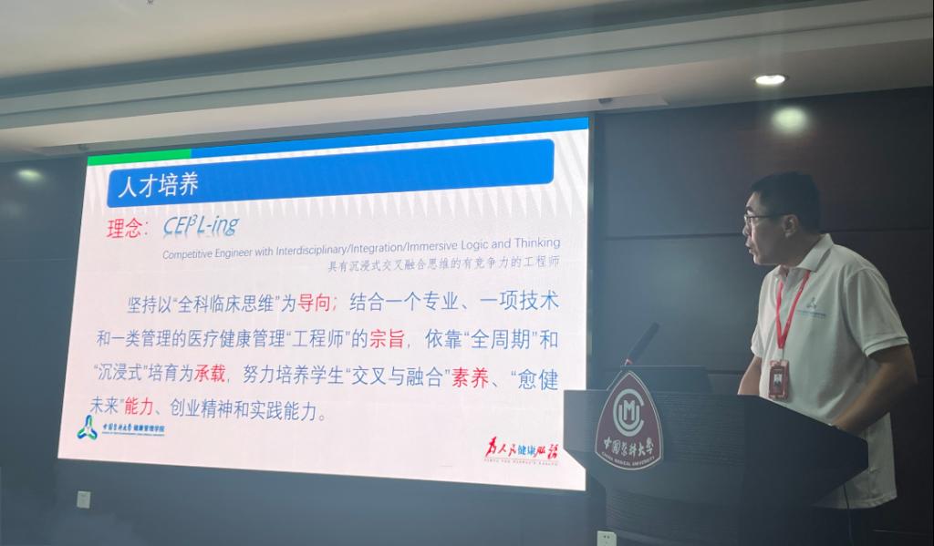 会上,石昕院长首先向新生们表示了最热烈的欢迎和最崇高的敬意,并介绍健康管理学院秉承CEI3L-ing(Competitive Engineer with Interdisciplinary/Integration/Immersive Logic and Thinking——“天花板”)人才培养理念,坚持以“全科临床思维”为导向,结合一个专业、一项技术和一类管理的医疗健康管理“工程师”的宗旨,依靠“全周期”和“沉浸式”培育为承载,努力培养学生“交叉与融合”素养、“愈健未来”能力、创业精神和实践能力。吴辉副院长为大家介绍了学院的专业设置、研究方向、实习基地等等,致辞慷慨激昂,阐词谆谆,深入浅出,让家长们对学院的教育理念和“孩子们来这到底是学什么,以后是做什么工作的”有了更深入、更通俗的理解。学院领导还鼓励学生家长就孩子的生活和学习问题与学院老师进行深入探讨,并表示学院将尽全力营造温馨舒适的学习和生活环境,保障健管学生身心健康和全面发展。在味觉、视觉与听觉的三重享受中,家长们感受到了学院的热情与专业,也为接下来的交流奠定良好的基础。
