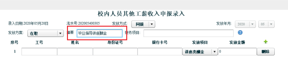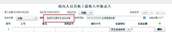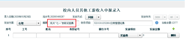7) 如您的“发放项目”选择“奖励费”请填写奖励名称;