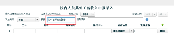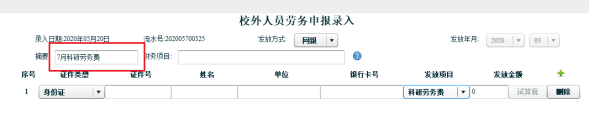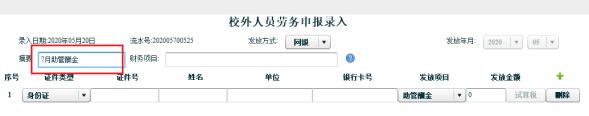 10)若您的“发放项目”选择不是以上特殊强调的发放项目,请直接填写提供服务的月份及发放项目名称,如所选发放类别为“助管酬金”,请在摘要中填写“7月助管酬金”。