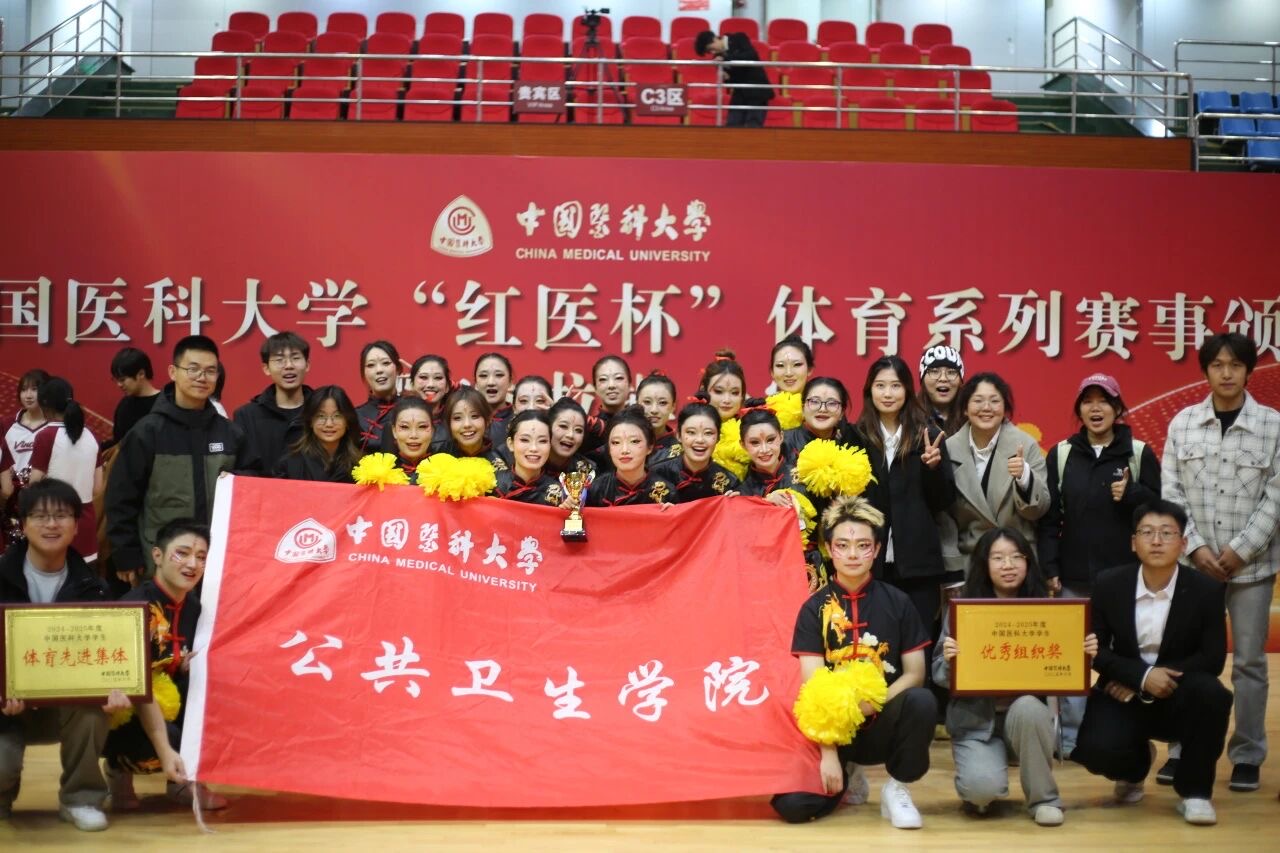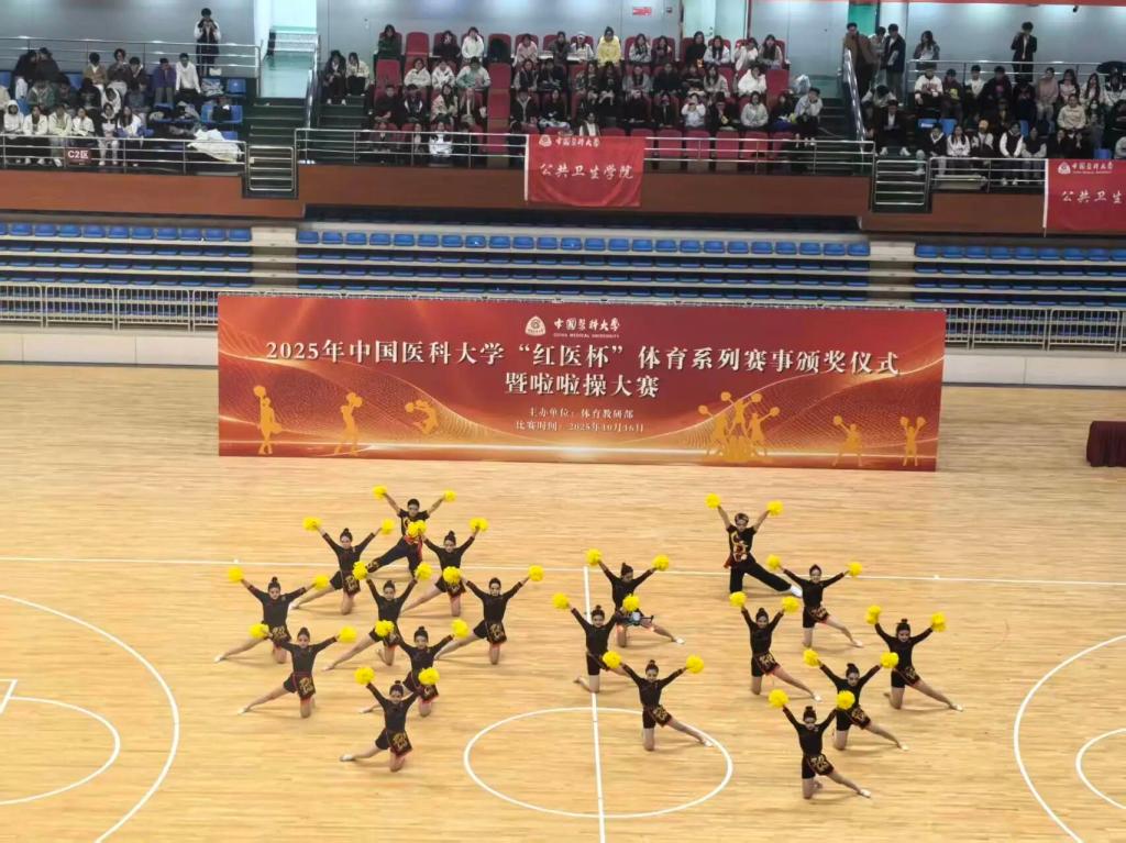 2025年10月16日晚17:30,中国医科大学“红医杯”体育系列赛事颁奖仪式暨啦啦操大赛在文体馆拉开帷幕。在本次“红医杯”系列赛事中,公共卫生学院学生代表队取得了多项优异成绩。其中包括女子排球队荣获团体第三名、2025年中国医科大学“红医杯”体育比赛优秀组织奖、2024-2025年度中国医科大学学生体育先进集体等荣誉。