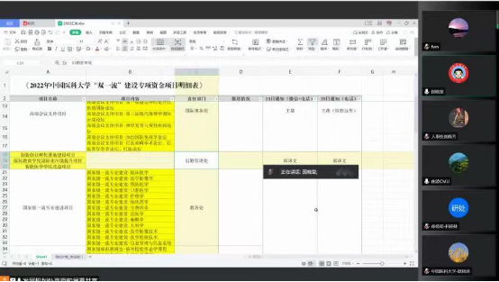 5月27日,发展规划处召开2022年“双一流”建设专项资金预算线上讨论会,党委常委、副校长曲波出席会议,高原副处长主持。人事处、教务处、科研处、国际事务部、后勤管理处、研究生院等部门负责人分别就相关情况进行了讨论与汇报。