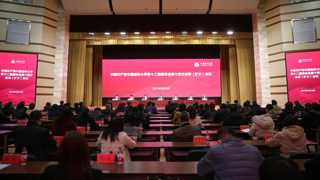 中国共产党中国医科大学第十二届委员会第十四次全体(扩大)会议于2023年3月15日在沈北校区举行。学校党委委员25人出席会议,全体实职正副处级干部列席。