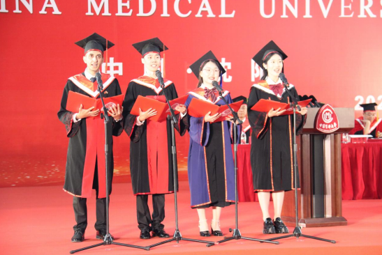 博士毕业生代表闫冠宇、硕士毕业生代表文艺、本科毕业生代表李汶泽、国际学生毕业生代表马吉发言,号召全体毕业生将奋斗与仁心相融,用奋斗点燃青春,用仁心照亮生命,成就仁心医者的光辉之路。