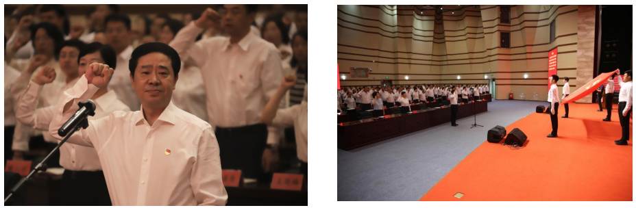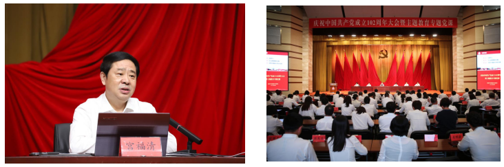 “我志愿加入中国共产党,拥护党的纲领,遵守党的章程……”6月29日,在学校庆祝中国共产党成立102周年大会上,党委书记宫福清带领与会的200余名党员一道举起右拳、庄严宣誓,铿锵有力的誓言响彻整个会场。