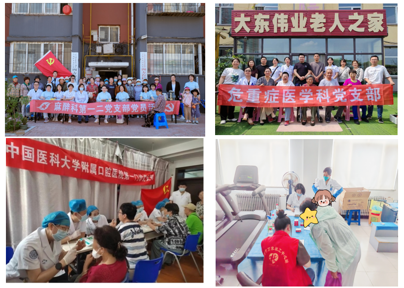 为使主题党日活动的效果看得见、摸得着、可检验,各基层党组织持续深化“党旗在基层一线高高飘扬”“在职党员进社区”“我为群众办实事”等活动。附属盛京医院走进沈抚改革创新示范区李石街道四方台村,开展麻醉和疼痛相关专业知识讲座以及急救技术实地演练和指导;附属第四医院走进大东伟业老人之家养老院开展义诊活动;附属口腔医院走进沈阳市宝环社区同义里小区开展健康宣教和义诊活动;附属生殖医院走进吴炉镇殿义村,为所在镇百姓开展生殖健康义诊,普及生殖健康知识……党员干部利用所学所长,切实为群众办实事、解难事,让党旗在基层一线高高飘扬。