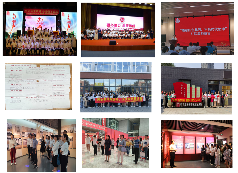 各基层党组织围绕“忠诚固根本、建功新突破”主题,用好辽宁“六地”等省内红色资源,积极创新活动载体,开展了一系列主题党日活动。附属第一医院开展“水乳交融,生死与共”沂蒙精神宣讲会,基础医学院举办“凝心聚力,筑梦远航”迎“七一”师生文艺汇演,智能医学学院开展“赓续红色基因,不负时代使命”红医教师宣言活动,实验动物部举行“献礼‘七一’,向党说句心里话”活动,临床一系举办“同心互助红医梦,浓情粽意新征程”少数民族结对子暨特色党日活动……广大师生党员用红色基因诠释忠诚担当,涵养新时代红医传人的良好品格。