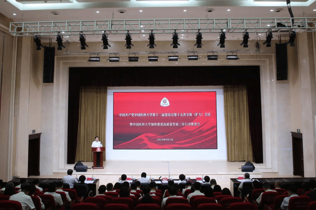 8月1日,中国共产党中国医科大学第十二届委员会第十五次全体(扩大)会议暨中国医科大学加快推进高质量发展三年行动推进会在沈北校区第一会议厅举行。