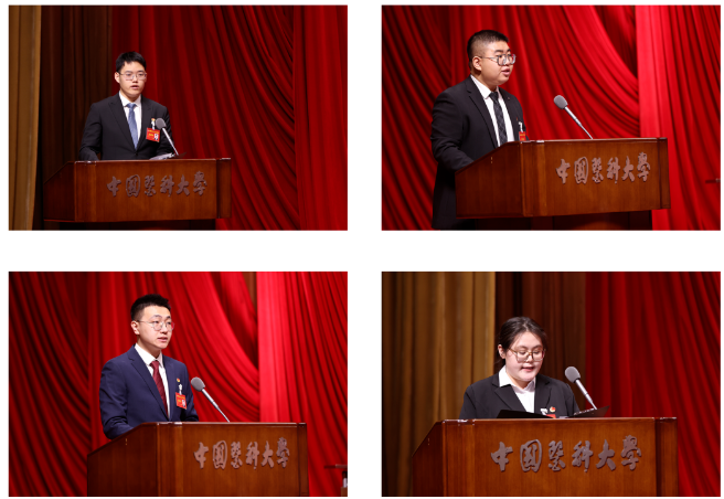 会上,第二十一届学生委员会主席团成员梅继鹏作题为《高扬理想旗帜,绽放红医光华,团结带领广大红医青年为加快推进国内一流国际知名研究型医科大学事业不断努力奋斗》的工作报告。第三届研究生委员会主席团成员尚隽博同学作题为《传承红医精神,不负时代使命,团结和引领广大研究生同学为建设国内一流国际知名研究型医科大学贡献青春力量》的工作报告。