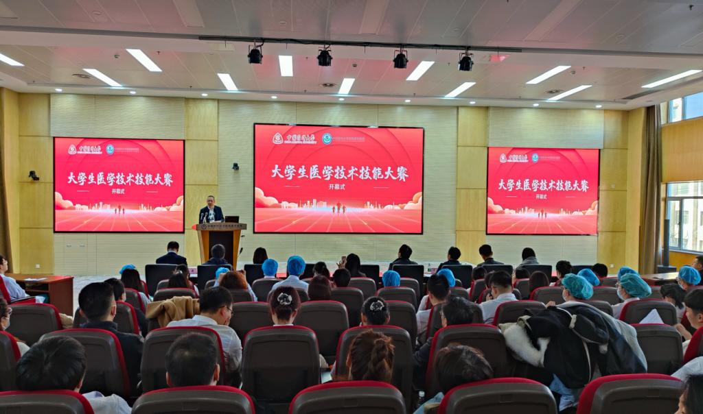 曲波在开幕式上致辞。他表示,大学生医学技术技能大赛作为学校重点关注和支持的学科竞赛,是对学生临床基础知识、基本技能、创新能力、实践能力和团队合作意识的有效锻炼,也是对临床实践教学效果的阶段性检验。