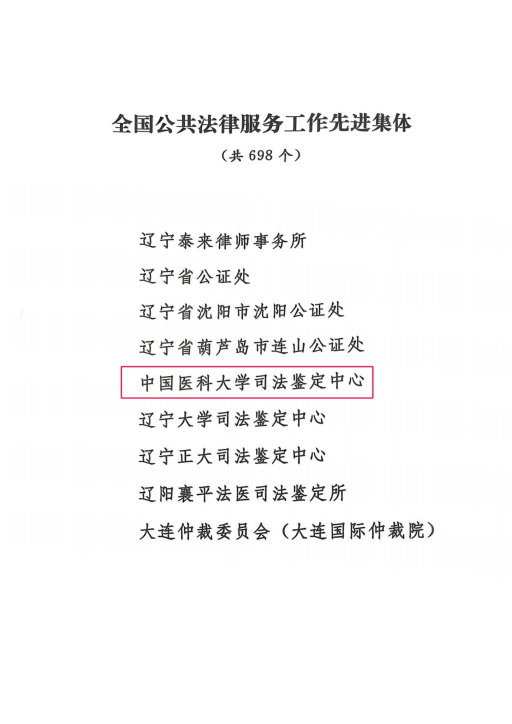 3月27日,司法部在北京召开全国法律援助和公共法律服务工作先进集体先进个人表彰大会暨现代公共法律服务体系建设推进会,对全国法律援助和公共法律服务工作集体、个人进行表彰。此次大会共对300个法律援助先进集体、450名先进个人和698个公共法律服务先进集体、944名先进个人进行了表彰。中国医科大学司法鉴定中心获得全国公共法律服务先进集体称号。