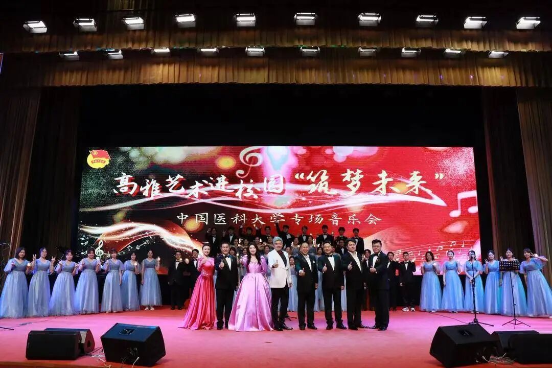 以高雅艺术涵养思政素养、落实立德树人根本任务,9月29日晚,中国医科大学高雅艺术进校园“筑梦未来”专场音乐会在中国医科大学沈北校区科学艺术中心举办。活动由辽宁省文联与中国医科大学联合主办,多位艺术家与红医合唱团联袂演出。辽宁省文联党组成员副主席林喦,辽宁省音乐家协会副主席秘书长刘蕾应邀出席。校党委副书记冯玉竑,党委常委、宣传部部长李晓娜,团委书记韦旭楠、美育教研室教师以及百余名师生代表现场观看。