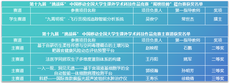 日前,第十九届“挑战杯”全国大学生课外学术科技作品竞赛全国终审决赛主体赛在南京大学举行,“揭榜挂帅”专项赛在华东理工大学举行。我校参赛团队表现优异,最终荣获“打擂揭榜”专项擂主1项、全国二等奖2项、三等奖2项,在全国舞台上展现出红医学子扎实的学术功底、卓越的创新能力和奋发有为的青春风貌。