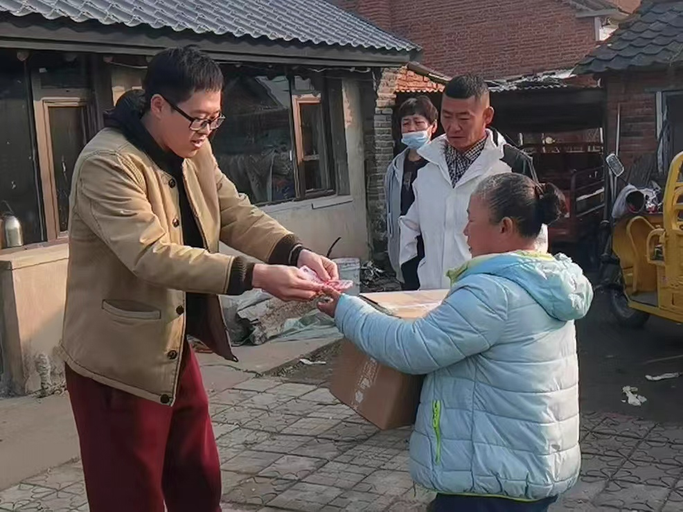 为深入学习贯彻习近平新时代中国特色社会主义思想,坚定理想信念,牢记初心使命,植根人民群众,11月21日,驻辽阳市八股村第一书记郭委奇、八股村两委成员代表中国医科大学国际事务部党支部全体党员前往党支部帮扶对象孙佳慧同学家中,向孙佳慧同学母亲转赠了学习用品和资助金。