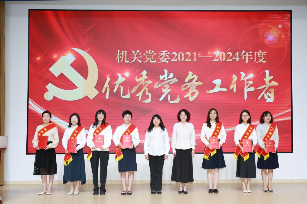 机关党委委员、人事处处长张秋实宣读机关党委《关于表彰2021-2024年度优秀共产党员、优秀党务工作者、先进党支部的决定》文件。机关党委副书记李丽蔚主持颁奖仪式。与会校领导及机关党委委员为优秀共产党员、优秀党务工作者和先进基层党组织代表颁奖。