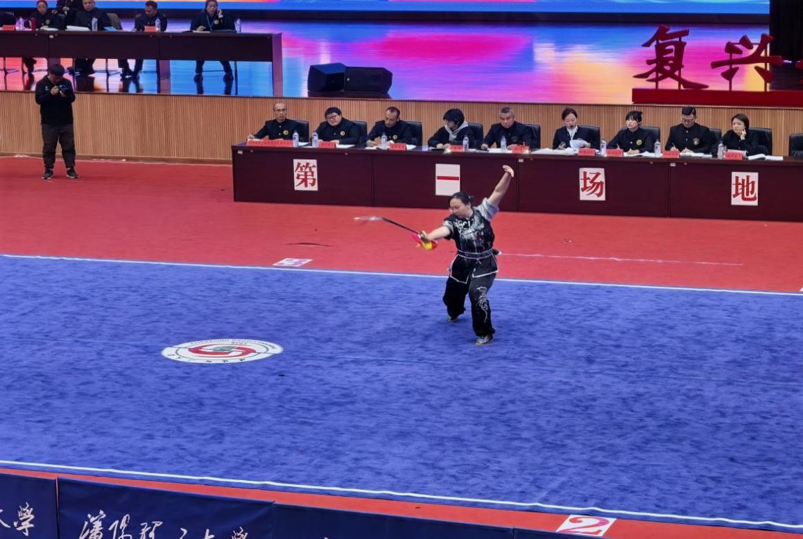赛场上,红医学子们英姿飒爽、斗志昂扬,充分展现了扎实的武术功底和顽强的拼搏精神。在激烈的竞争中,他们凭借精湛的技艺和稳定的发挥,一路过关斩将,取得了令人瞩目的成绩。王艺潼同学在女子本科院校组软器械项目中,以行云流水般的动作和出色的表现,一举夺得冠军;徐唯乐同学在男子本科院校组大刀项目中,刚劲有力的招式、沉稳大气的风格,赢得评委和观众的一致好评,成功斩获冠军;刘宇宁同学在女子本科院校组刀术项目中,凭借凌厉的刀法和敏捷的身手,荣获亚军;许翰林同学在男子本科院校组软器械项目中表现出色,获得季军,同时在男子本科院校组少林拳项目中取得第五名的好成绩。最终,我校武术代表队共获得2枚金牌、1枚银牌、1枚铜牌。此外,王艺潼同学还荣获优秀运动员称号。