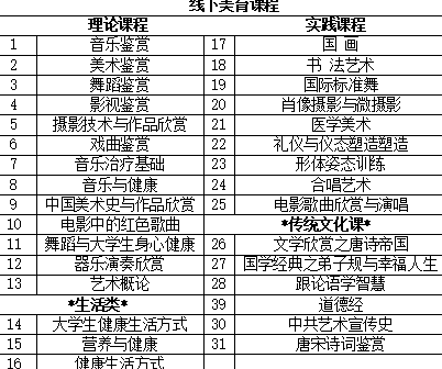 多年来美育教研室教学团队,依据国务院教育部颁发的系列美育文件精神,在学校美育教学与实践中不断探索美育特色教学,创新美育教育方法,积极开展医学与艺术的融合,推进一流课程建设,积极开展线上课程与网络教学,充分利用智慧树、中国慕课大学等信息平台资源,先后开设美育课程30余门。