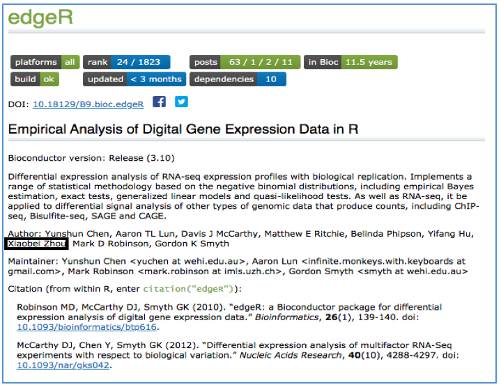 (edgeR是本人参与研发的R/Bioconductor基因测序分析软件程序包。)