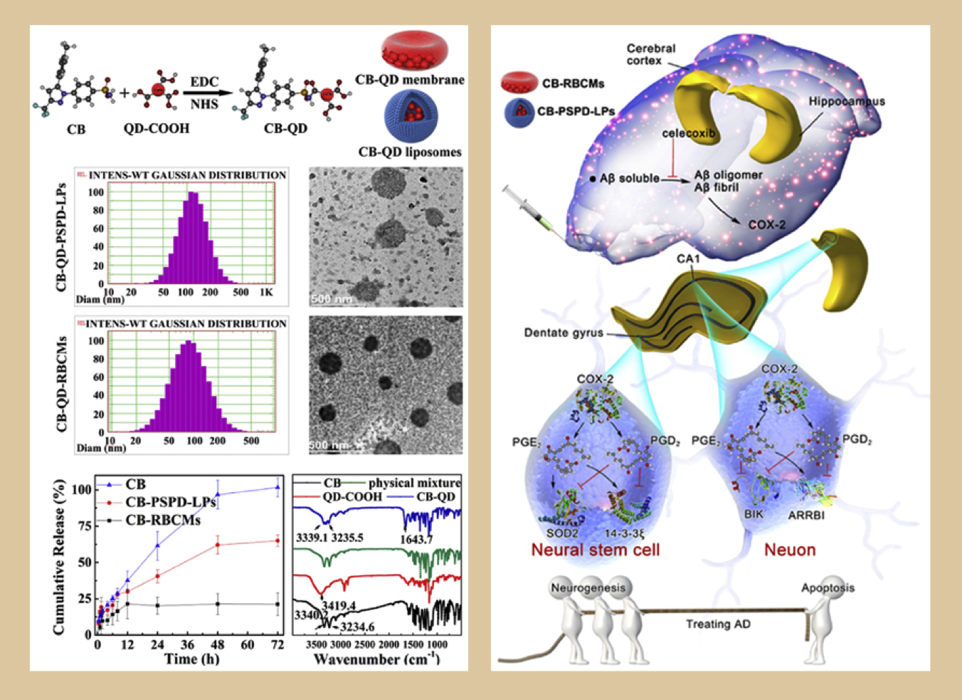 血脑屏障是阻止药物入脑的“天然屏障”,如何使药物绕过或穿越血脑屏障是神经疾病药物研发领域亟待解决的重大问题。我们发现通过鼻腔给药方式可显著提高某些药物和生物活性分子(如乳铁蛋白、褪黑素、去铁敏等)的脑内生物利用度,其机制可能与药物经嗅神经及其周围的组织间液绕过血脑屏障入脑有关;采用生物材料(如红细胞膜等)包裹药物可使药物穿越血脑屏障进入脑实质,显著改善阿尔茨海默病转基因小鼠的认知功能障碍。