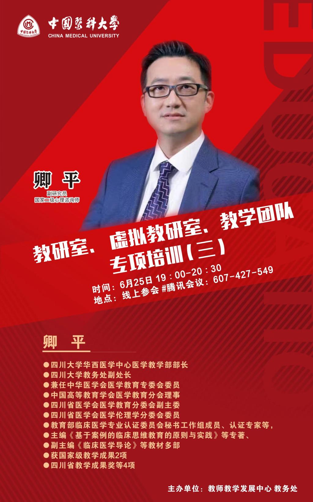 主讲人:卿平 副研究员、四川大学华西医学中心医学教学部部长,四川大学教务处副处长