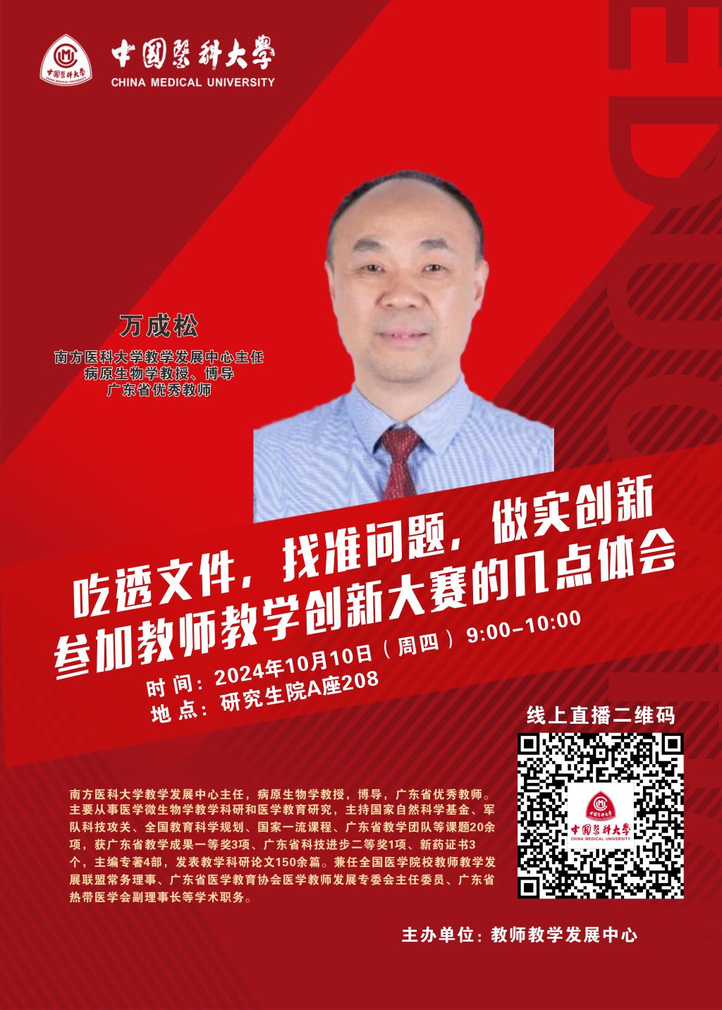 万成松,南方医科大学教学发展中心主任,病原生物学教授,博导,广东省优秀教师。