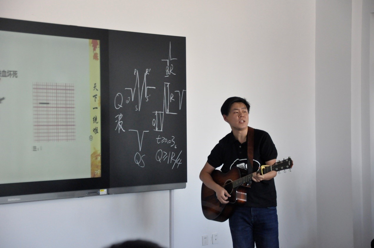 范博渊老师从“寓教于享、寓教于乐”的主题出发,首先对传统心电图教学效果、厌学和厌教情况进行了分析,倡导教师在教学中把一些理论性较强的知识采用歌曲、故事等文娱活动的方式表现出来。把阿Q人物与Q波的诊断标准相联,艺术教学让枯燥的心电图知识有人情味,提高学生的学习好感度和主动思考能力。范博渊老师将艺术关联到专业,让教师角色多元化,在艺术设计中融入课堂思政,课堂生动,赢得了在场教师的阵阵掌声。