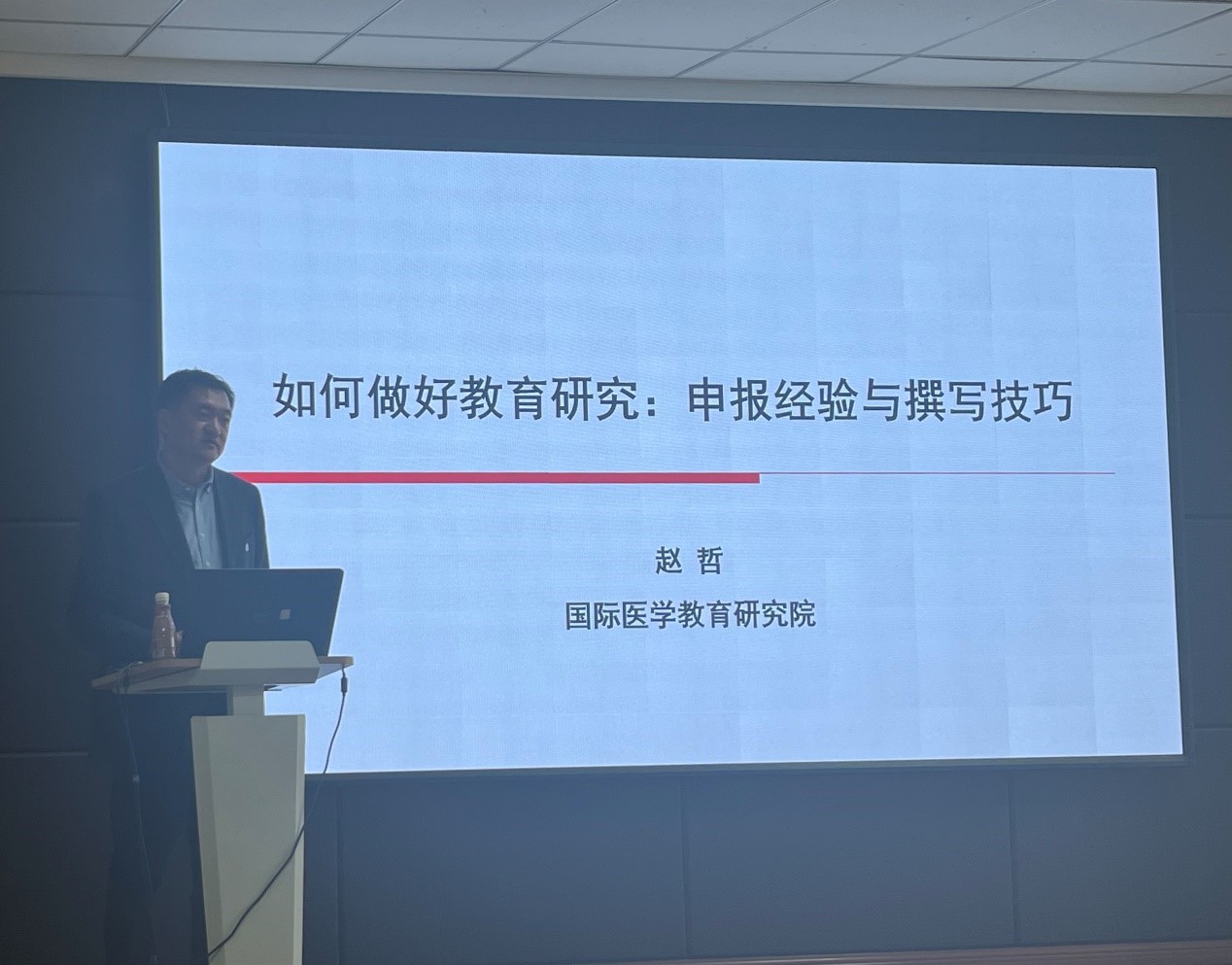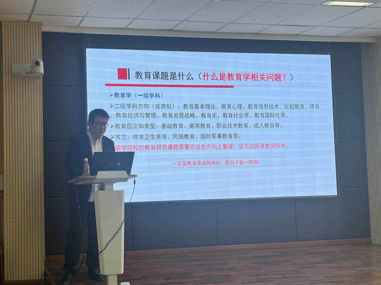 4月17日下午,我校教师教学发展中心组织开展培训活动,特邀中国医科大学国际医学教育研究院赵哲副研究员以“如何做好教育研究:申报经验与撰写技巧”为题作精彩报告。学校全体教师、教学骨干等30余人参加了本次培训。会议由教师教学发展中心主任赵阳主持。