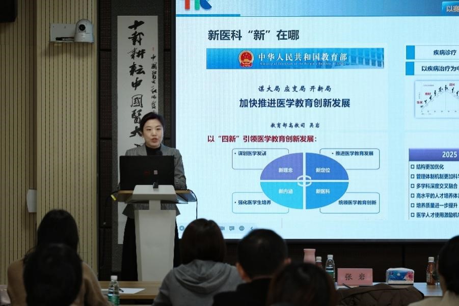 张岩从“新医科背景下如何凸显教学创新特色”、“教学创新报告的基本结构和要素”、“教学设计和形式创新”以及“课堂现场呈现注意要点”等四个方面进行讲授,张岩结合教师实际授课情况,帮助教师深入理解第四届教师教学创新大赛内涵、解读评审标准和深度剖析教师该如何提升创新能力。现场教师积极互动,收获良多。