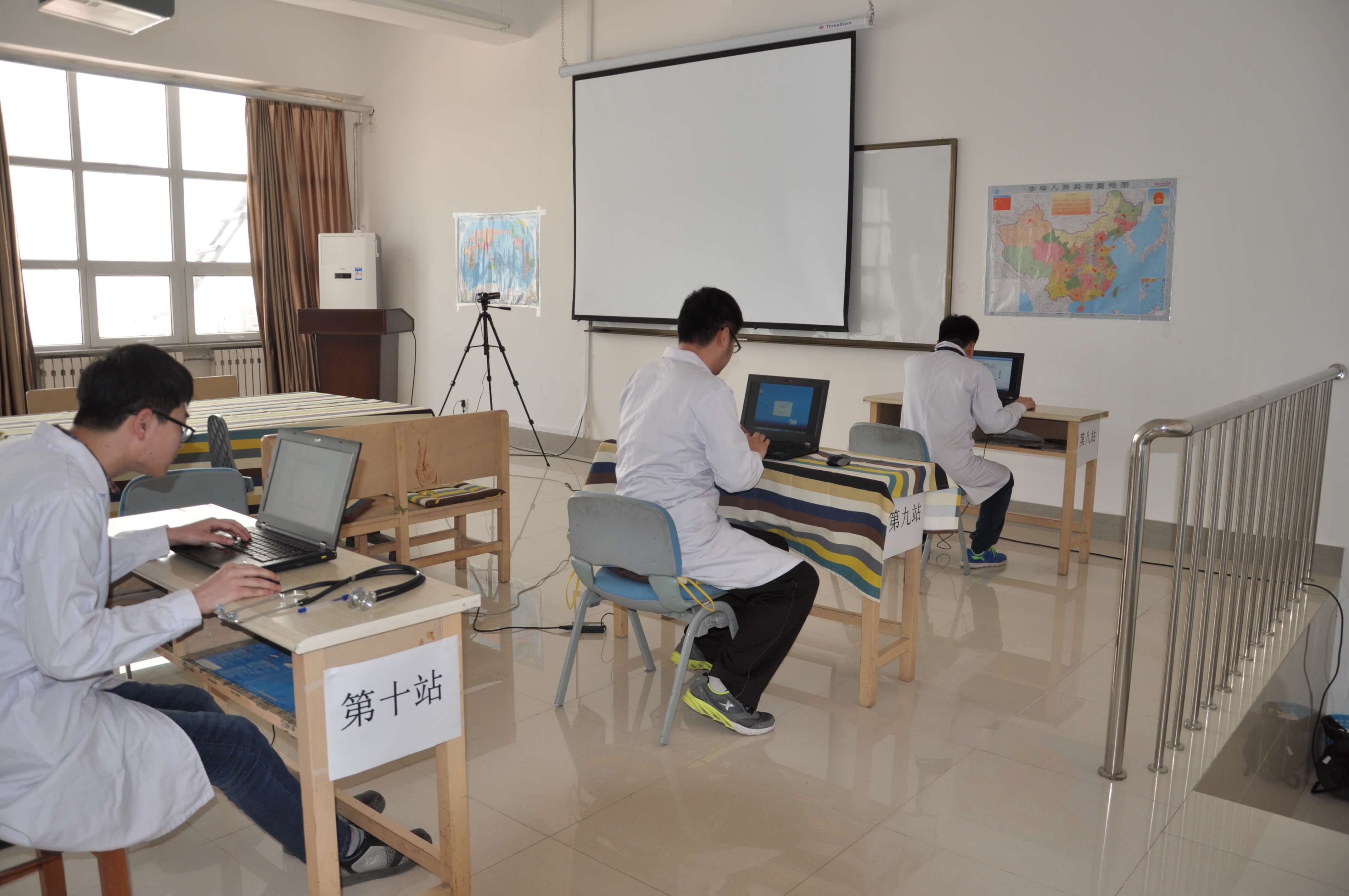 2016年5月13日,2011级(97期)五年制临床医学专业客观结构化临床考试在公共教学楼A座五楼临床技能中心顺利进行,教务处副处长许东阳及实践教学管理教师查看了考试情况。从5月9日开始一共有492名临床医学专业学生(含97期汉语授课留学生)按照规定时间表参加OSCE考试。 本次考试每名学生共计200分钟,10个考站,其中6个标准化病人考站,1个小站考试,2个计算机模拟病例站,1个临床实践技能操作考站,同时轮转应试。