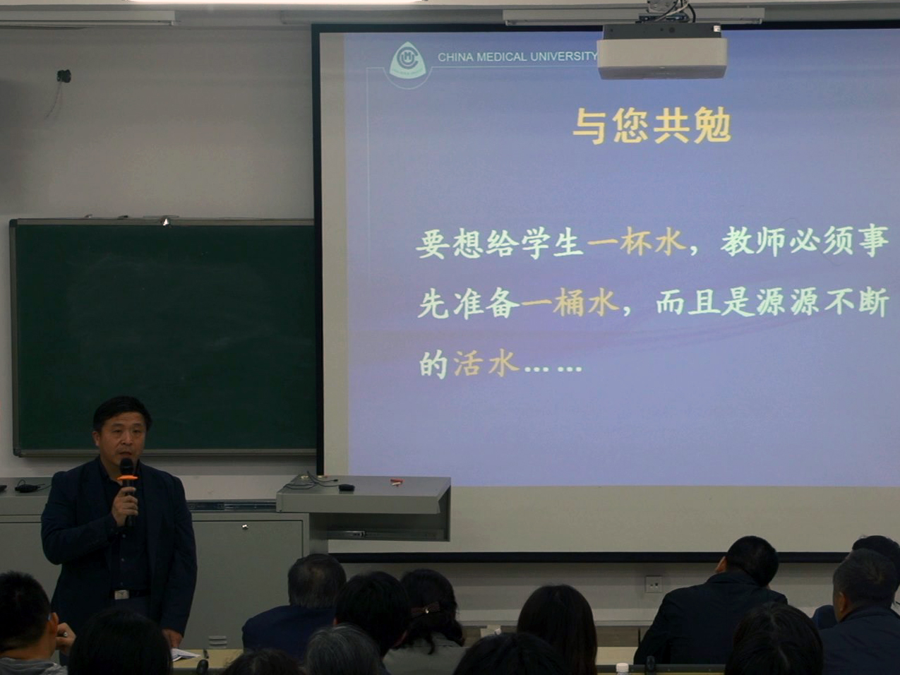 中国医科大学教学研讨会系列讲座正式出台。第一期课堂教学于2015年5月19日下午在公共教学楼A座101教室举行,全校各教学单位100余名教师代表参加。本次研讨会由教务处副处长唐漫主持,副校长于晓松出席并作了讲话。
