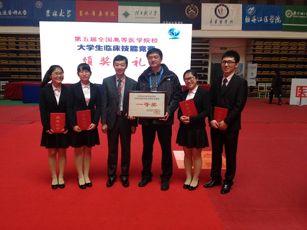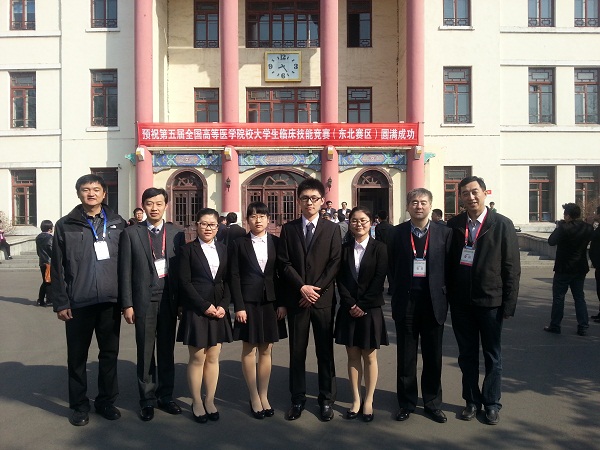 2014年4月12日至13日,第五届全国大学生临床技能竞赛东北分区赛在哈尔滨医科大学成功举办。我校由刘亚枫、吕红、曹品、潘冰婷等4名2009级(95期)临床医学专业五年制学生组成的代表队与来自东北三省共15所医学院校的16支参赛队伍同场竞技,他们以良好的发挥、精彩的表现、优异的成绩获得一等奖,将于5月中旬参加在广州中山大学举办的全国总决赛,这是我校连续五年进军全国总决赛。