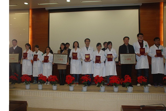 教务处田伟处长在赛后的颁奖仪式中作了重要讲话,他指出我校一贯重视临床实践教学,2009年成为首届全国大学生临床技能竞赛的19所发起院校,并连续组织参加全国竞赛,2013年首次成功开展校内大学生临床技能竞赛。实践中不断调整思路、加强引导、深化改革、制定政策,促进医学生理论与实践的有机结合,使更多的教学单位、更多的学生积极参与到提升临床实践能力的工作和学习中,以期更好的适应社会对医学人才培养质量的需要。通过两年来的校内竞赛实践,在各教学单位领导、教学管理干部、广大临床教师的共同努力下,从硬件设施到教学意识以及教学效果方面都取得了显著的成绩,实现了学生的全员培训,参赛选手的随即抽取,达到了举办竞赛广泛提升教学质量的根本出发点,尤其是各教学单位均培养锻炼出了一支热爱教学、经验丰富的临床实践技能培训骨干教师队伍,形成并逐渐完善了实践教学培训机制,为今后的人才培养打下了坚实的富有建设性意义的基础。田伟处长在总结中祝贺全体参赛学生取得的良好成绩,希望大家从比赛中进一步寻找不足,在今后的学习工作中取得更大的成绩。最后,他对第一临床学院为承办赛事做出的巨大努力和成功表示感谢和祝贺,同时也邀请各教学单位总结经验、积极组织、认真教学,参加2015年由第二临床学院承办的第三届大学生临床技能竞赛。