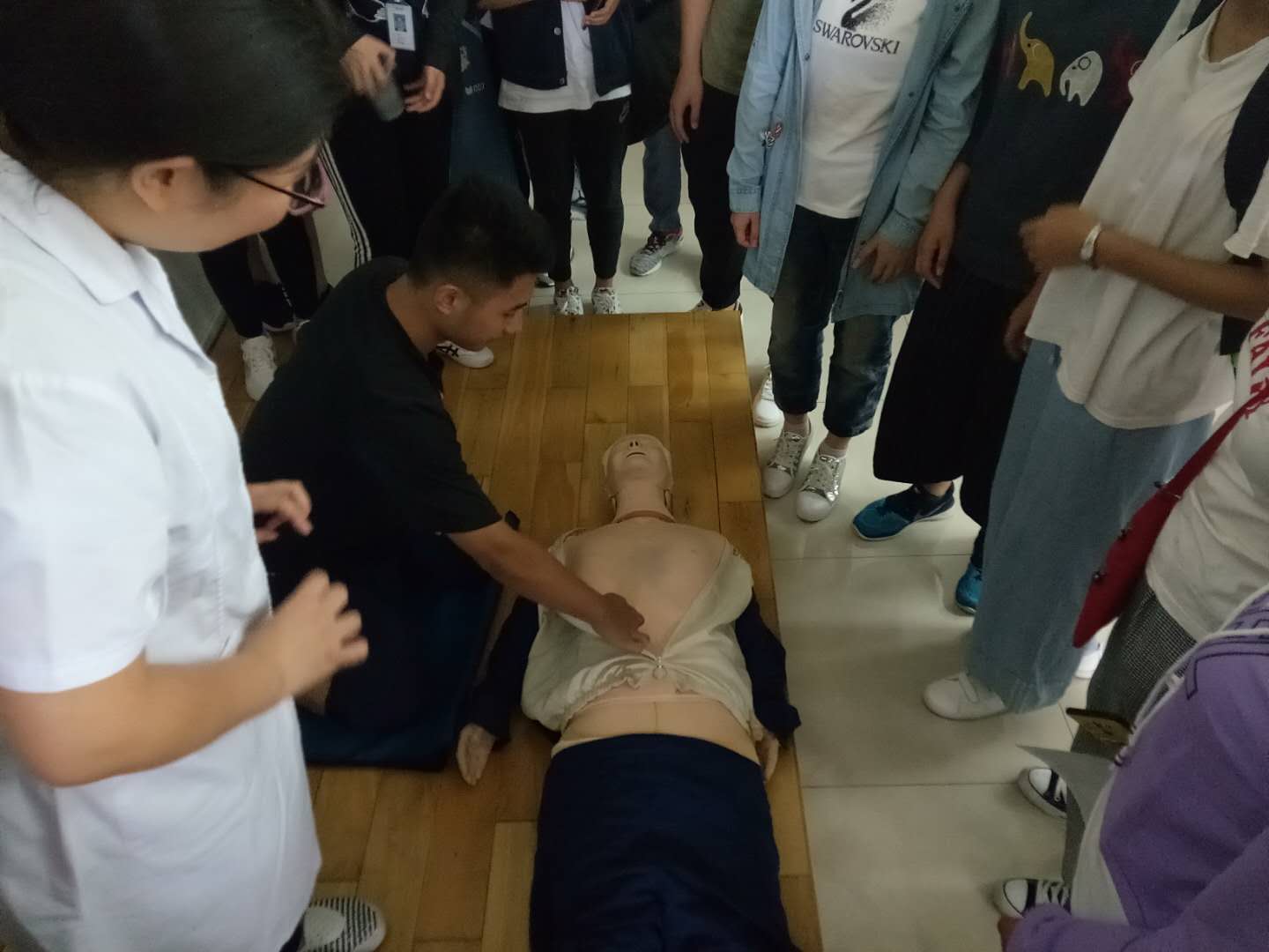 为尽早将专业思想和临床思维引入人才培养体系,实现“早临床,多临床,反复临床”,教务处组织2018级(104期)全体新生接受心肺复苏急救培训,培训教师由第一、二、四临床学院的高年资临床医生组成。本次培训旨在让同学们掌握常规急救技能,并领悟医生的职业内涵。
