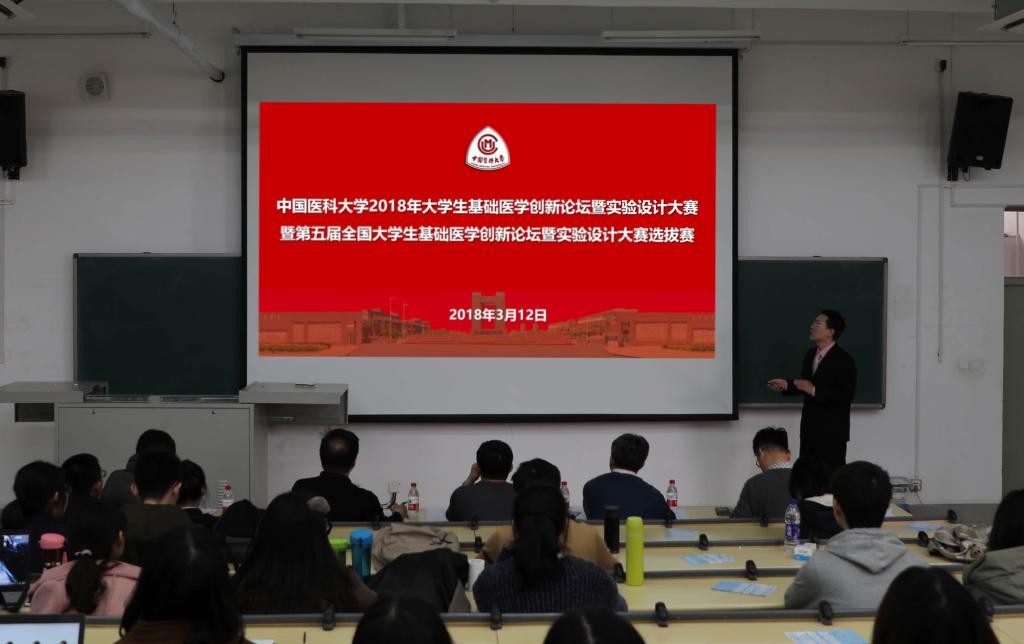 2018年3月12日下午,中国医科大学2018年大学生基础医学创新论坛暨实验设计大赛在公共教学楼C102、C103教室成功举办。本次大赛由学校教务处主办学生科协承办。基础医学院李洪鹏教授、赵成海教授、王华芹教授、赵越教授,公共基础学院俞航教授、曹师承教授,药学院肖庆桓副院长、高明奇教授,公共卫生学院关鹏教授,法医学院李如波教授受邀作为大赛评委。副校长于晓松教授出席了本次大赛。
