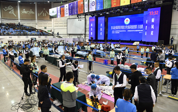 于晓松副校长、第二临床学院杨清副院长,以及30余名来自临床学院的培训骨干教师亲临现场。本次大赛由第二临床学院全面负责,学院领导高度重视,提供了全方位的保障,先后有40多名培训教师对选手进行了悉心指导。今天取得的优异成绩展现了我校学生的风采与综合素质,是学生刻苦训练、各部门通力合作的结果。我校高度重视学生临床技能的培养,将技能竞赛作为促进临床实践教学、提升人才培养质量、展示学生精神风貌的重要契机。我们目标是达到“四个一”,即总结出一套医学生临床技能培训教学方法、锻造一支优秀的师资队伍、培养一批拔尖医学生、编写一套临床技能培训教材。