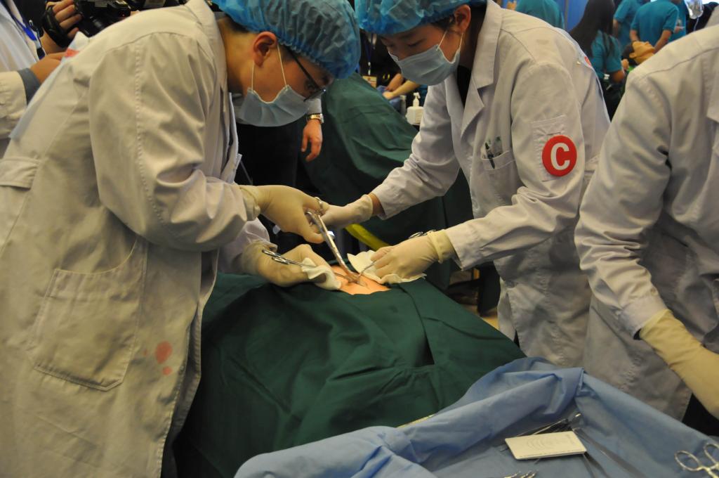 本届比赛参赛代表队共33支,参赛选手132名,均为我校2012级(98期)七年制和五年制临床医学专业学生。参赛学生来自19所临床学院、教学医院。本届比赛采取多站式初赛和赛道式决赛,项目涉及内科、外科、护理等多项临床技能操作;包括临床技能、临床思维、人文关怀、法律法规等所有既定赛事。考核项目的设置重在考察医学生基本临床技能、基本临床操作、外科临床操作技能。选取的病例内容紧密贴近临床、并兼顾操作速度和质量,充分考查了学生临床思维、临床综合操作能力及临场应变能力;另外本届比赛首次引进了信息化考评手段,利用平板电脑现场评分,这项举措不但提高了比赛效率、准确率,而且实现了对比赛结果的及时分析和反馈。同时本次大赛还邀请了所有参加此次比赛的各临床教学基地的专家作为比赛裁判,充分体现了比赛的公平。