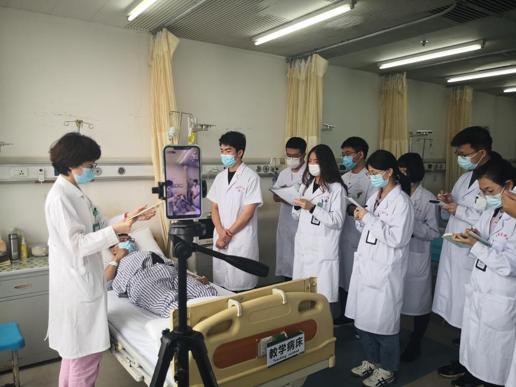 10月15日,第一临床学院、第二临床学院通过线上直播的方式开展示范性教学查房。21所临床教学基地,400余名师生线上同步参与查房。