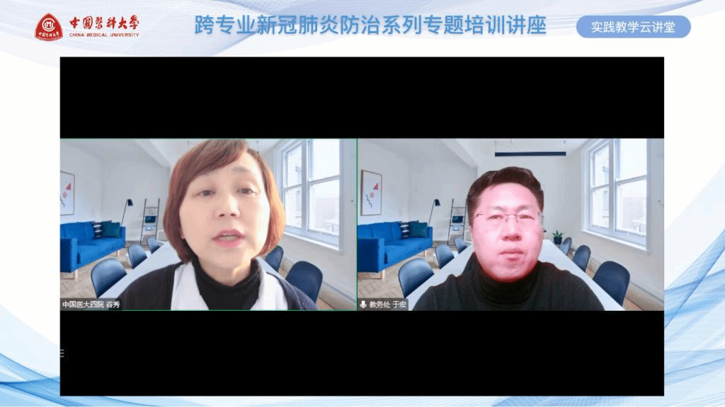 此次讲座由教务处于宏副处长主持,校内临床医学类专业、临床药学专业、护理学专业的毕业年级带教教师、实习学生同步在线观看,累计观看达到1300余人次。主讲老师谷秀教授以奥密克戎病毒病原学特点、传播途径和临床表现开篇,同时紧跟社会热点,将公众普遍关注的俯卧位增加氧合原理、新冠肺炎激素治疗作用机制、老年患者治疗特点等等问题进行细致讲解,并结合自身工作经验,在预后转归、临床分型及诊疗等方面一一阐述,内容丰富、专业性强、实用性高。讲座结束后,与同学们进行了充分的互动,详细解答了学生心中一直困扰的诸多问题。