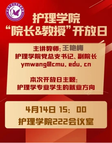 学贵得师,亦贵得友。为增进师生沟通,让学生深入了解学校的教育教学管理情况,老师深入了解学生校园的学习生活,我院于2023年4月14日下午三点成功召开护理学院"院长&教授”开放日活动第一期。本期主讲教师为王艳梅书记,活动内容为护理学专业学生的就业方向。