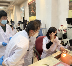 在理论学习后,赵江月教授组织同学们进行了新鲜动物模型眼的实操练习。为了让大学生们有机会接触到临床手术操作,更好的理解理论知识、丰富临床经历、培养实践技能,赵江月教授为同学们详细演示了眼科显微器械的握持方式、显微镜调试、手术器械放置、眼球固定、眼位控制等显微手术基础知识,并示范、讲解了角膜裂伤缝合的手术操作。