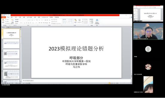 活动中,呼吸内科、循环内科、消化内科、肾内科、普外科.骨科、妇产、儿科、感染科等专家团队的老师针对理论模拟考试中出现的问题展开讲解并耐心细致的回答了同学们提出的疑问。教务处副处长于宏参加了活动,本次活动有360余名应届临床执业医师理论考试考生在线参与。