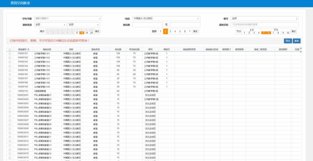 进入到查询页面后,选录周次,星期,节次,再点查询,对应的信息显示出来