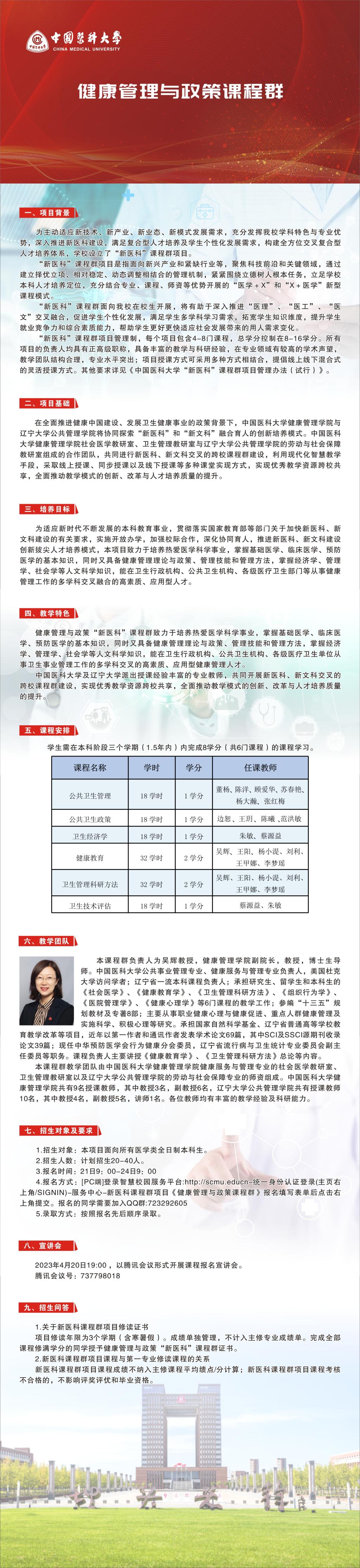 2022年中国医科大学首批“新医科”课程群立项14个,学校将陆续公布各项目的招募海报,此次公开招募的课程群为《健康管理与政策课程群》,具体要求和报名方式参见海报,期待您的参与!