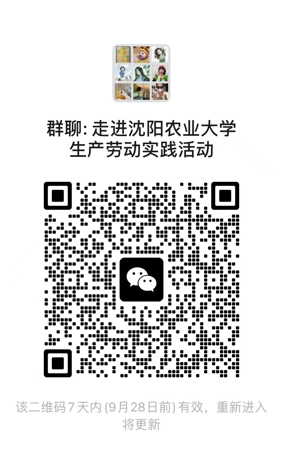 【PC端】登录智慧校园服务平台:http://s.cmu.edu.cn - 统一身份认证登录(主页右上角/ SIGN IN)- 服务中心 - “走进沈阳农业大学,感受秋之收获”生产劳动实践项目 - 右上角【发起预约】提交。报名成功后,请报名成功同学加入微信群: