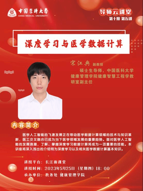 中国医科大学导师云讲堂第十期第五讲活动由教务处联合健康管理学院举行。现将活动安排通知如下: