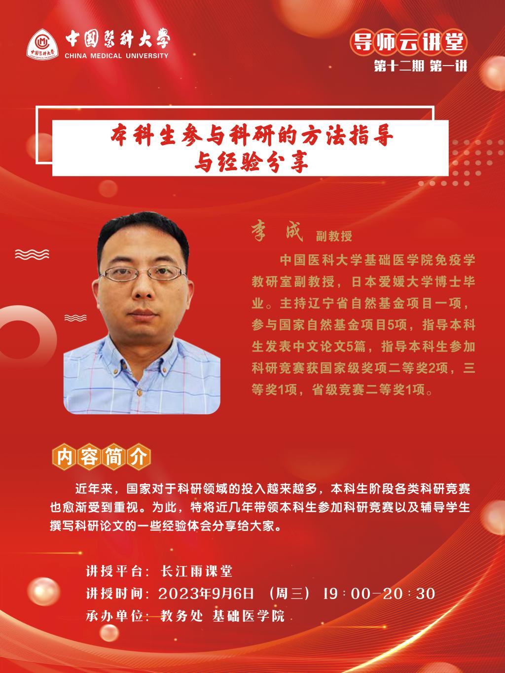 2.主讲人:基础医学院 李成 副教授