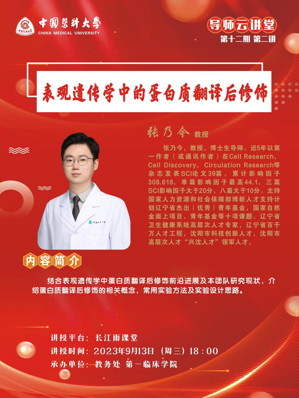 中国医科大学导师云讲堂第十二期第二讲活动由教务处联合中国医科大学第一临床学院举行。现将活动安排通知如下: